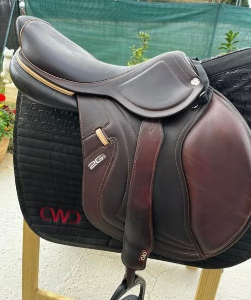 ‼️ À VENDRE – Selle CWD 2Gs ‼️ Conçue pour les cavaliers exigeants, cette selle est en très bon état général et offre un parfait équilibre entre confort et fonctionnalité. Fabriquée avec un cuir de belle qualité, elle a été soigneusement entretenue pour garantir sa durabilité et une agréable souplesse. Aucune déchirure n’est présente, et toutes les coutures sont intactes, témoignant de sa robustesse et de sa conception irréprochable. Cette selle marron est idéale pour les amateurs de saut d’obstacles (CSO), et sa conception vous permettra de garder une fixité optimale de la jambe tout en maintenant un bon équilibre.
